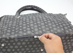 เพียงรูดซิปด้านล่างหลังตัวกระเป๋า ก็สามารถสอดคันชักกระเป๋าเดินทางได้ทันที